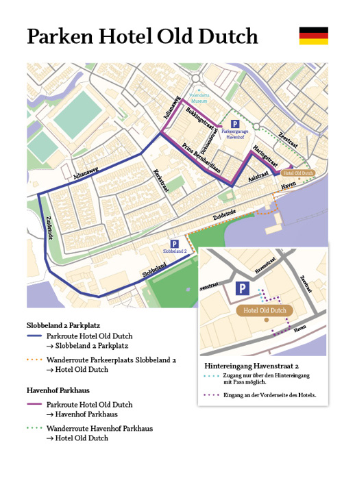 Wenn Sie mit dem Auto nach Volendam kommen, können Sie ganz in der Nähe des Hotels Old Dutch parken. Es gibt zwei Möglichkeiten: