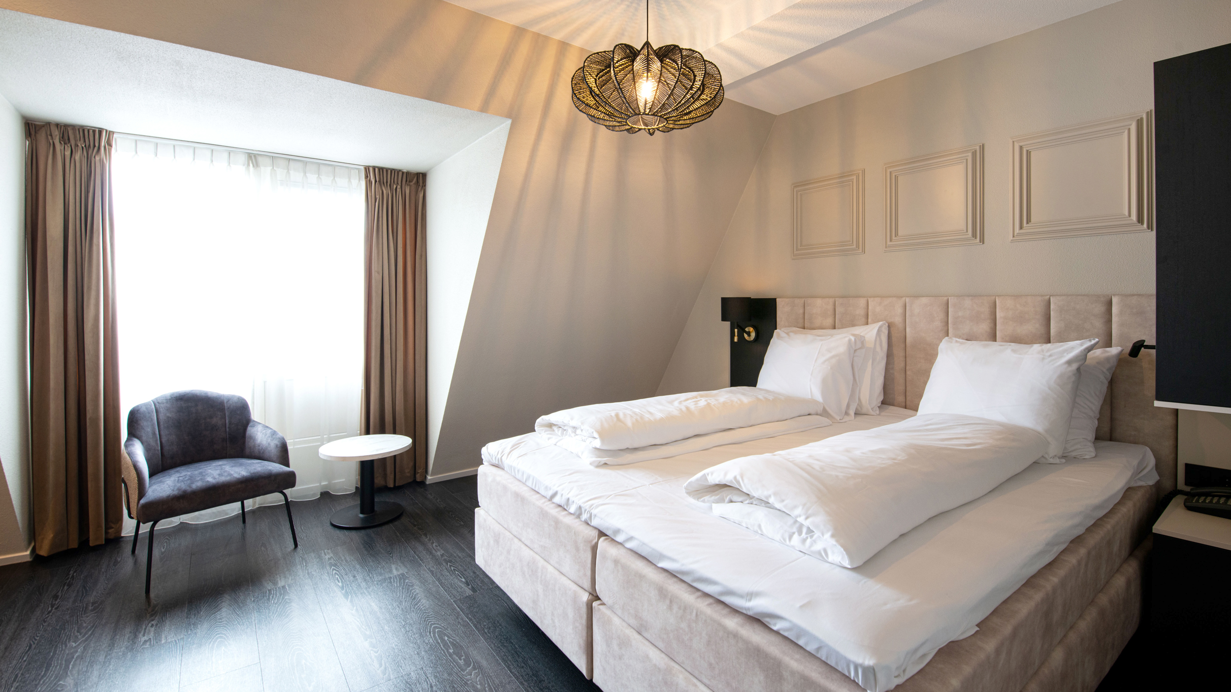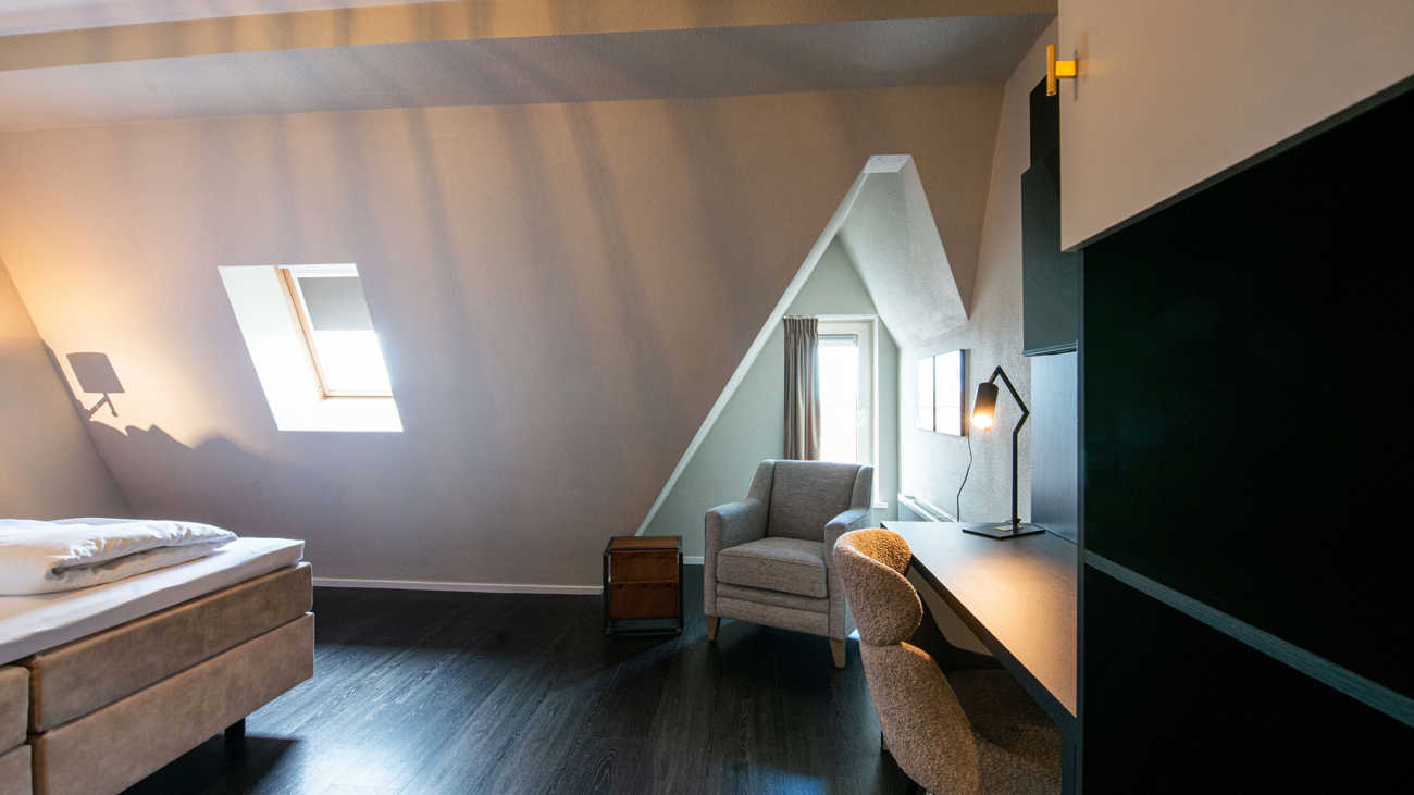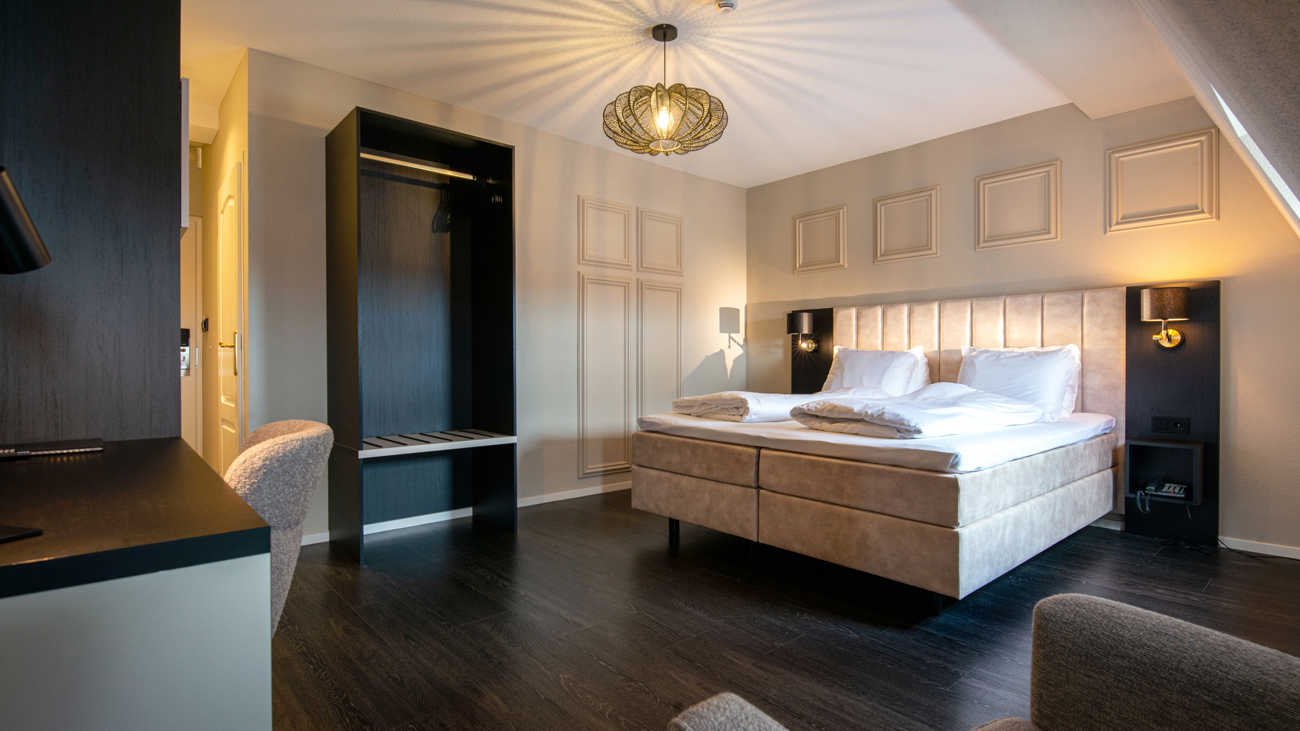 Overnachten in Volendam met stijl doe je met onze elegante Superior kamer; een mooie houten vloer, alle faciliteiten die je wilt, 27m2 aan ruimte en uitzicht op het prachtige centrum van Volendam. Het is mogelijk om je elektrische fiets op te laden en een luxe ontbijt is altijd gratis.