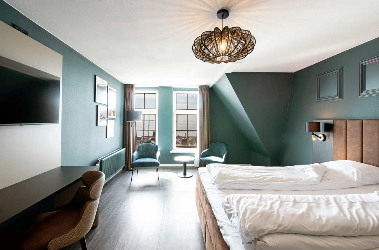Elegante kamer mét uitzicht op de haven en zee bij Volendam? Dan is dit de kamer voor jou: Houten vloer, 27m2 kamer en een prachtig uitzicht. Het is mogelijk om je elektrische fiets op te laden en een luxe ontbijt is altijd gratis.
